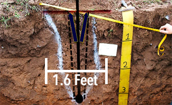 The Vibrosoiler® provides 4 plus times soil breakout from that of a standard ripper with minimal root pruning and lateral breakout to within 6 - 8” of the vine. This removes tractor compaction and the plow pan and increases water and nutrient penetration into the soil profile.